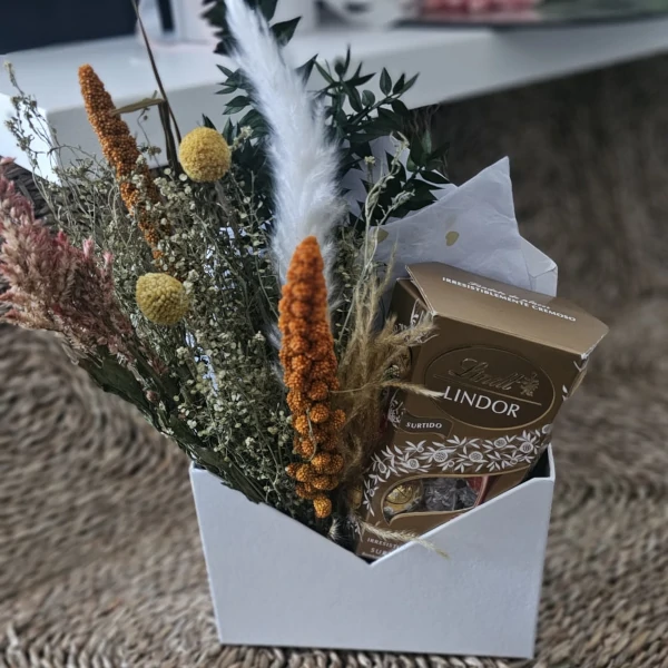 Box de flores preservadas com bonbons Lindt 200gr Podemos personalizar em vinil ao gosto do cliente.