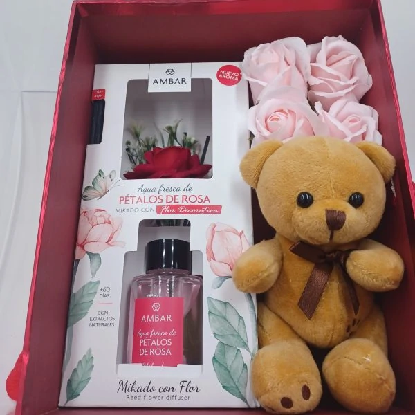 Inclui um ursinho, 4 flores de sabão e um aroma.