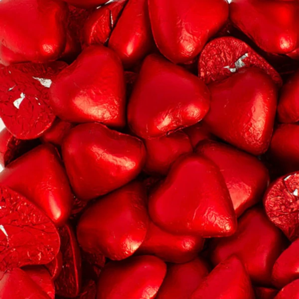 Estes bombons são de chocolate de leite e estão embrulhados num papel vermelho que dá um toque elegante e romântico. Perfeitos dar elegância à mesa de doces da festa de Natal da empresa ou familiar!